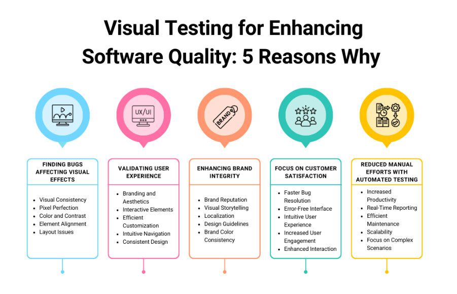 - Automates the manual and repetitive task of checking screens, layouts, and designs.